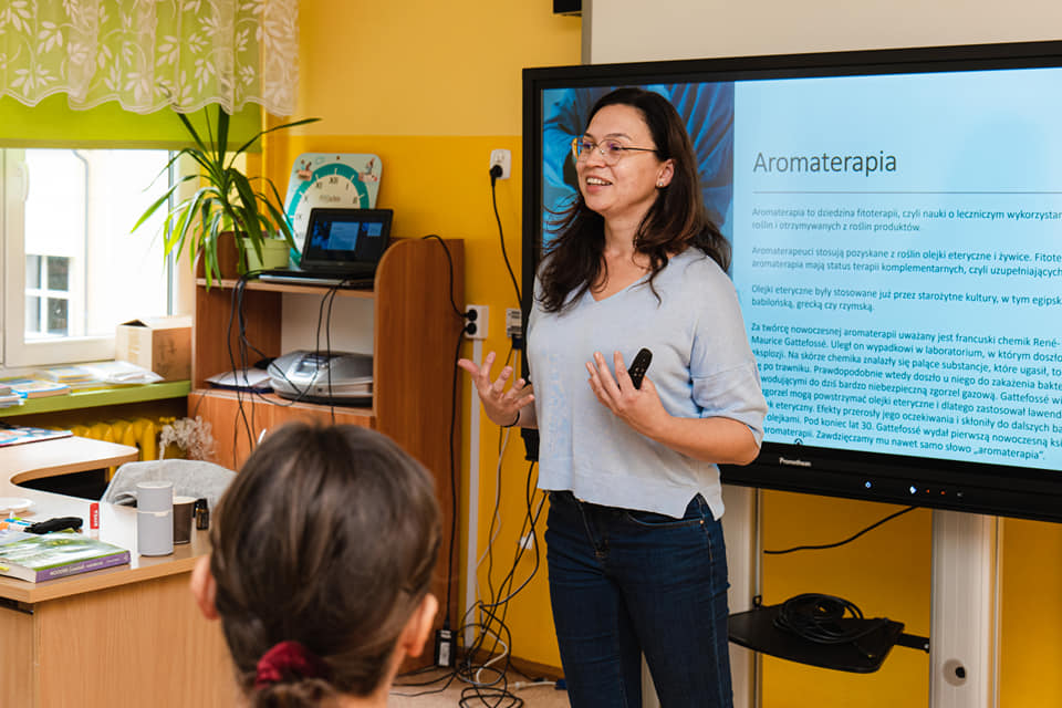 Naprawdę było cudownie inspirująco, rodzice dostali możliwość zdobycia wiedzy na temat aromaterapii – nie tylko w teorii, ale również w praktyce. Warsztaty dla Mam przeprowadziła Ania Naszewska – niesamowita kobieta z ogromną wiedzą na temat olejków. Pierwszym tematem warsztatów było wsparcie emocji dzieci z niepełnosprawnością (działanie olejków eterycznych na emocje, zasady stosowania olejków u dzieci, jakie emocje wspieramy, jaki wpływ maja olejki na funkcjonowanie organizmu). Oprócz wiedzy o olejkach Rodzice stworzyli własne kompozycje zapachowe w zależności od potrzeb – mieszanki na spokój, na bezsenność, na energię. 🙂🙂